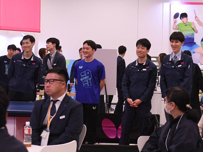吉村選手から「バタフライの開発陣は素晴らしい!」と絶賛され、会場にいた開発スタッフが照れ笑いを浮かべる微笑ましいシーンも