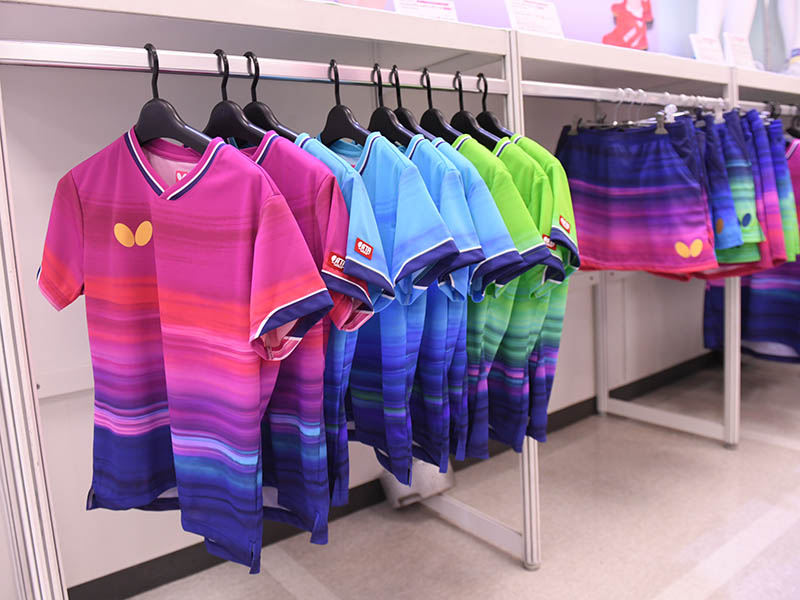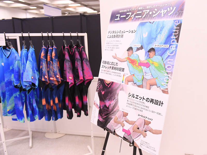 卓球の動きをデジタル解析したうえで設計したという『ユーフィニア・シャツ』。卓球のすべてにおいて科学的アプローチを続けるバタフライ開発陣の研究心はさすがだ