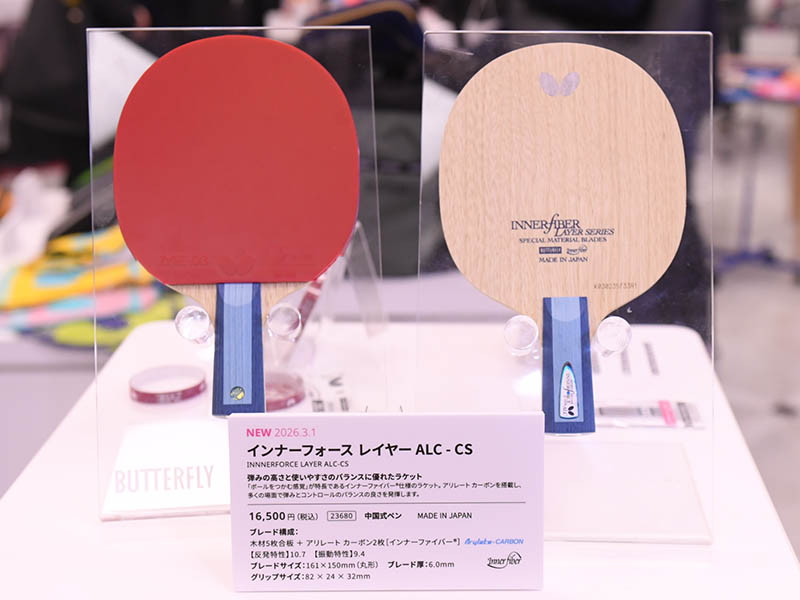 2026年春にバタフライからリリースされる唯一のラケット『インナーフォースレイヤー ALC – CS』。シェークの人気ラケットの中国式ペンバージョンだ