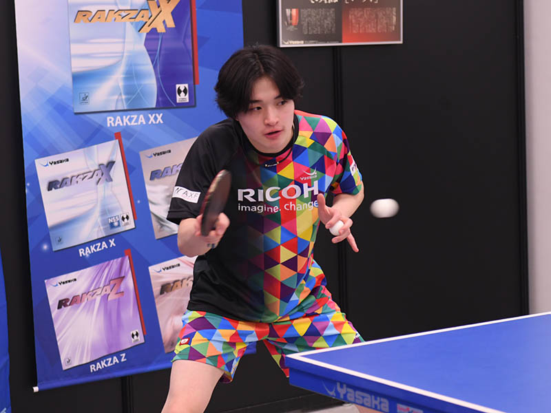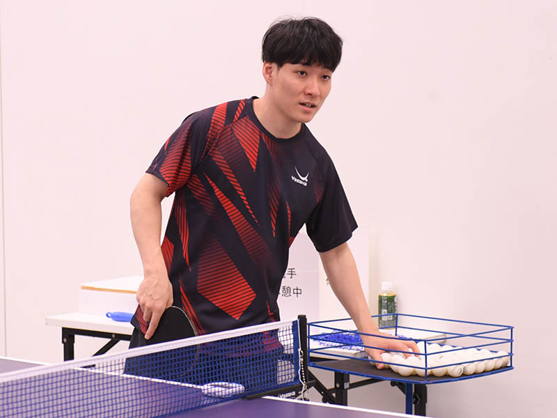 同じくヤサカ契約の中村光人選手。試打者に少しでも気持ちよくプレーしてもらおうと、しっかりラリーをつないでいた