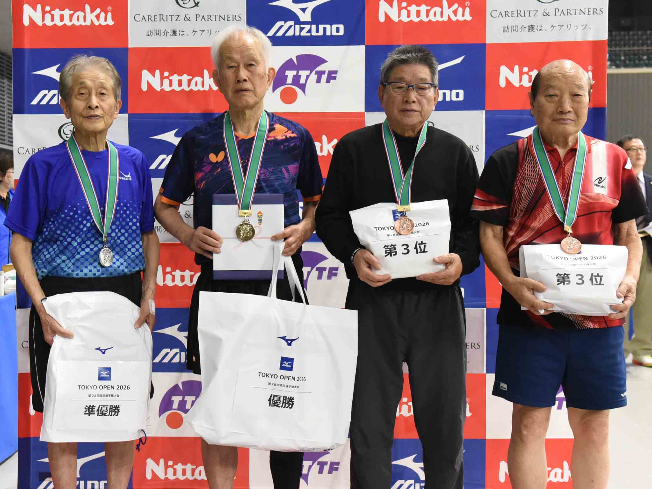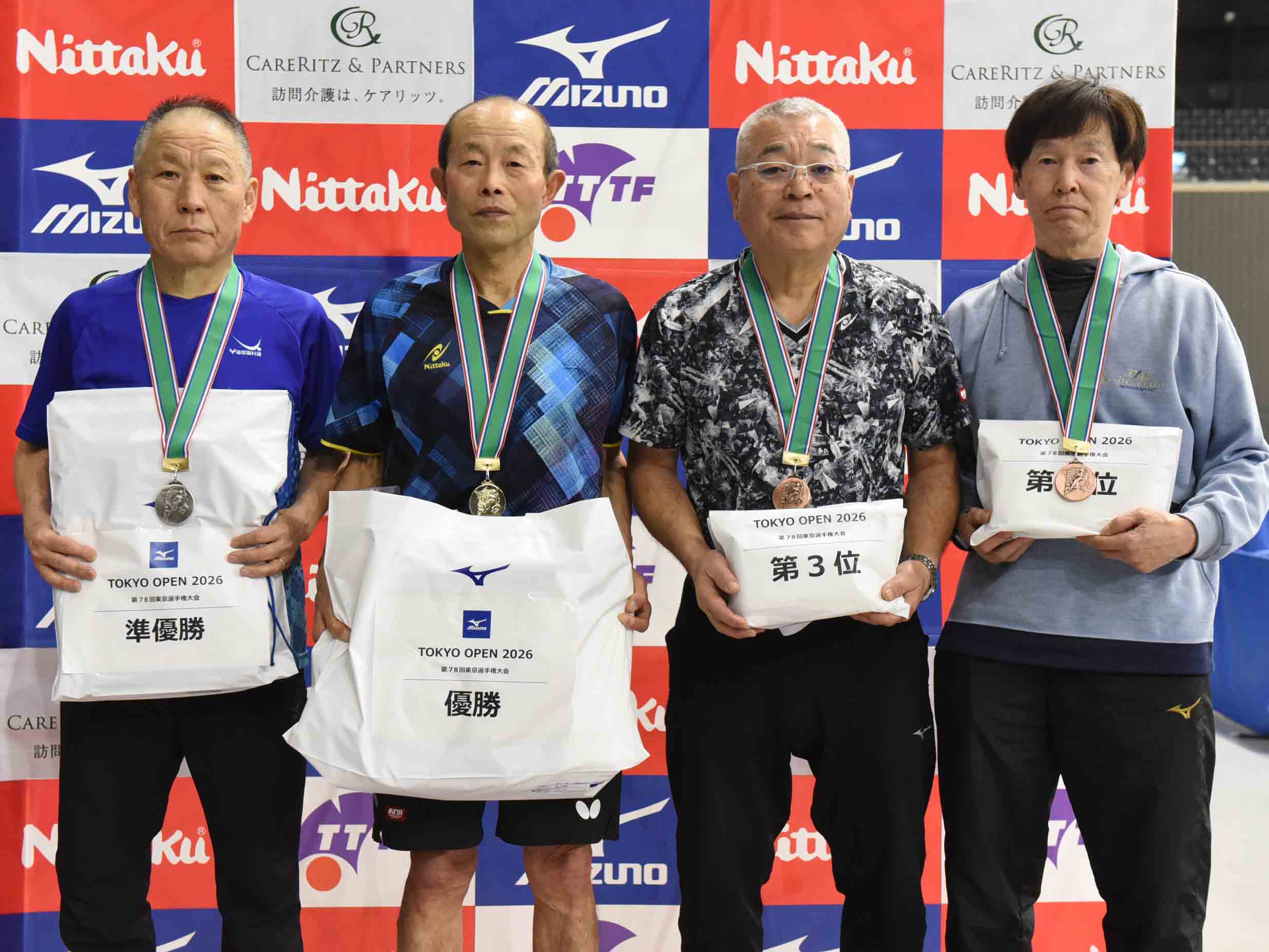 昨日から東京・京王アリーナTOKYOで行われている第78回東京卓球選手権大会は年代別10種目で優勝者が決定。男子ローセブンティからナインティの入賞者は下記のとおり。