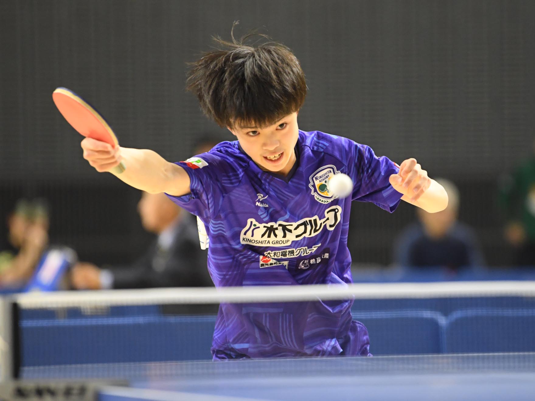 男子ジュニアを制したのは中学2年の大野。鋭い両ハンドドライブを武器に勝ち上がり、決勝は髙橋に3-1で勝利。昨年の川上流星に続き、2年連続で木下アカデミー勢が男子ジュニアを制した。
