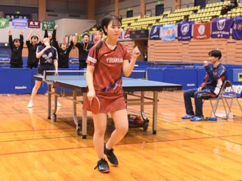 遊学館が1・2番で快勝を収めて王手をかけるも、後半勝負のオーダーを組んだ横浜隼人がダブルスから逆襲。五十嵐/佐藤が競り合いながらも3-0で勝利すると、五十嵐が4番でも連勝。ラストは大出がゲームカウント2-0とするも、佐藤が追い上げて最終ゲームまでもつれたが、大出が11-9で逃げ切った。大出は明徳義塾との1回戦でもラストでフルゲームで勝利と、チームの守護神となっている。
