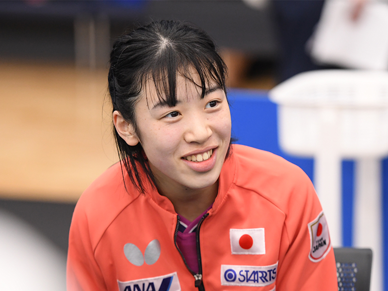 「初めて世界卓球という大舞台に立つので、緊張するけれどすごく楽しみな気持ちでいっぱいです。先輩方もすごくやさしくて、明るいチームなのでその一員として頑張りたい。