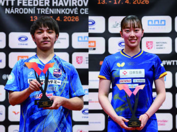 4月13日から17日にかけて、チェコで開催された「2026 WTTフィーダー ハビージョフ」。5種目で頂点が争われる中、男女シングルスと女子ダブルスの3種目で日本勢が優勝し、大活躍を見せた。