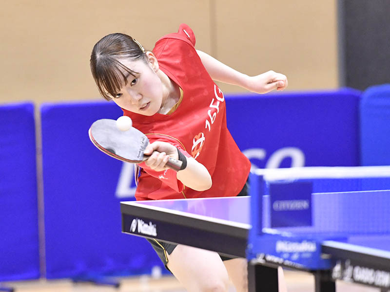 女子シングルス準優勝:田村美佳(十六フィナンシャルグループ)。得意のバックハンドを武器に前回大会女王の出澤杏佳(レゾナック)を撃破。今大会の台風の目となった