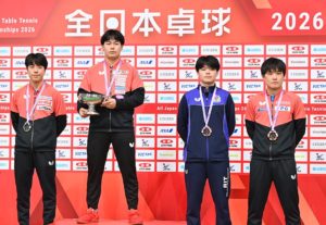 男女ダブルスでは、宇田/戸上隼輔(明治大)、及川瑞基(木下グループ)/木造勇人(個人)、長﨑/張本の3ペアが快勝で準決勝進出を決めた。また混合ダブルスでも、戸上/張本美和、張本智和/早田の2ペアが4強入りを果たすなど、日本勢の活躍が光っている。