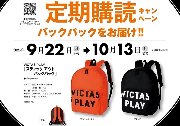 締切間近!『卓球王国』定期購読キャンペーン(10/13まで)