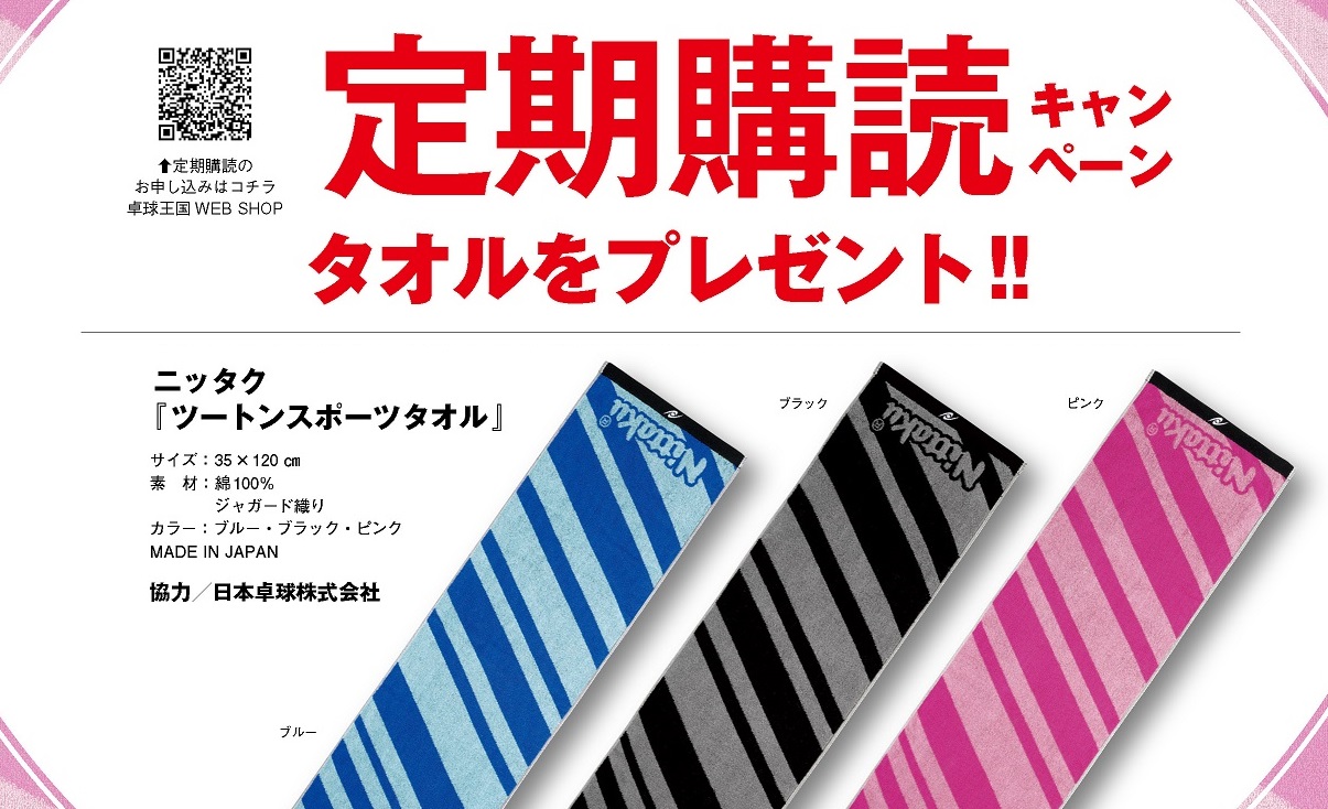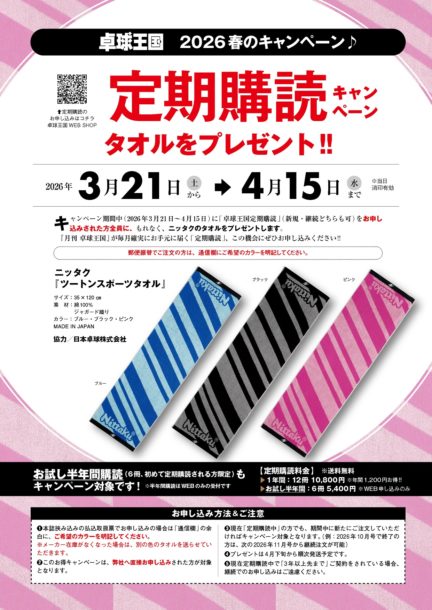 ⇒『卓球王国』綴じ込みの「払込取扱票」、もしくは郵便局備え付けの「払込取扱票」にて、お申し込み・ご入金をお願いします。